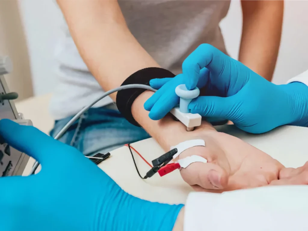 Studia i parametri neurofisiologici di conduzione nervosa e misura la capacità di trasmettere impulsi nervosi.